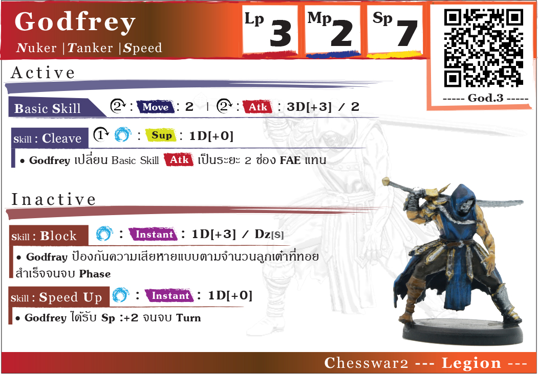 History of Godfray Sword of Justice เป็นองค์กรผู้ดูแลความสงบภายในดินแดนแห่ง Legion พวกเขาเหล่านี้จะสวมหน้ากากเพื่อปิดบังตัวตนเวลาพวกเขาออกปฏิบัติงาน พวกเขามีหน้าที่ไล่ล่าอาชญากร ที่สร้างความวุ่นวายภายในเขตพื้นที่ของ Legion และนำตัวพวกคนเหล่านั้นมาขึ้นรับฟังคำพิพากษาในความผิดที่ตนเองได้ก่อขึ้น เหล่า Sword of Justice แต่ละคนจะมีชื่อเรียกที่แตกต่างกันออกไปเวลาพวกเขาเรียกกันเองหรือได้รับการสืบทอดชื่อนั้นมา และชื่อหนึ่งใน 13 ชื่อที่ได้ถูกใช้มาอย่างยาวนาน คือ Godfrey ตำนานต้นกำเนิดจากยุคที่เหล่า Sword of Justice ที่ได้ก่อตั้งขึ้นบนผืนแผ่นดินใหม่ คอยปกป้องผู้คนภายในเมืองแห่งการเริ่มต้นใหม่ที่รู้จักกันในชื่อดินแดนว่า "Legion" ในปัจจุบัน พันธะสัญญากับ Seer คือ การที่ได้รับพลังแห่งการมองเห็นความจริงในใจที่ได้ปรากฎ เพื่อไม่ให้ความยุติธรรมต้องผิดพลาด